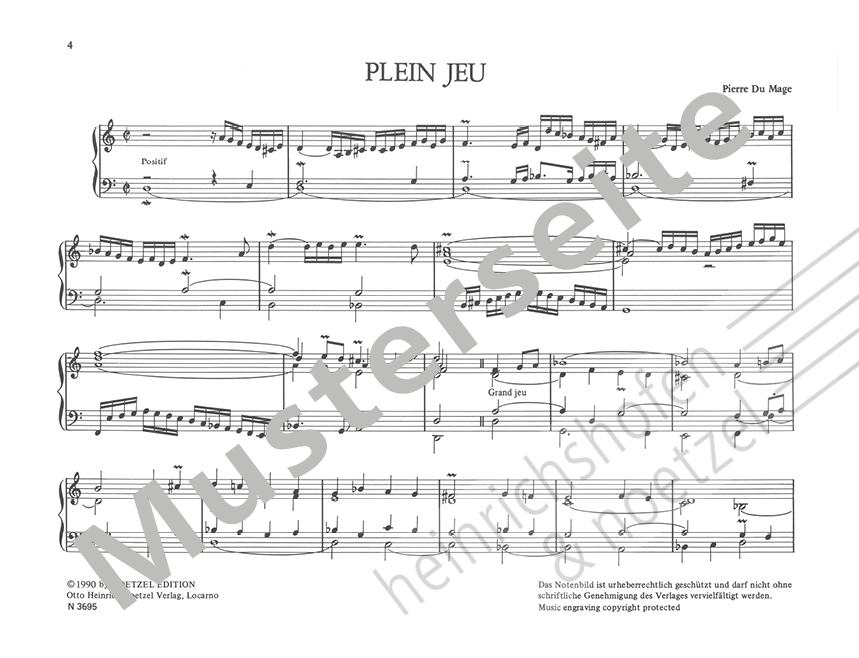 In 1708, the Livre d'Orgue was published, the composer's only known work: a kind of suite of eight pieces in the elegant, brilliant style of his teacher Louis Marchand, which, however, as Du Mage modestly states in the dedication, were not worthy of ‘one of the most perfect instruments in the world’. Du Mage died on 2 October 1751.