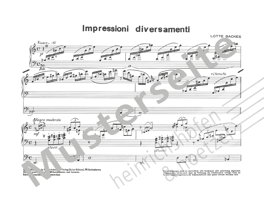 Lotte Backes (1901 - 1990), Trägerin des Bundesverdienstkreuzes für ihr kompositorisches Lebenswerk, war Pianistin, Organistin und Komponistin. Sie komponierte viele Orgelwerke und Kammermusik und schuf zahlreiche Stücke, darunter Toccaten, Partiten, Passacaglias, Improvisationen etc.