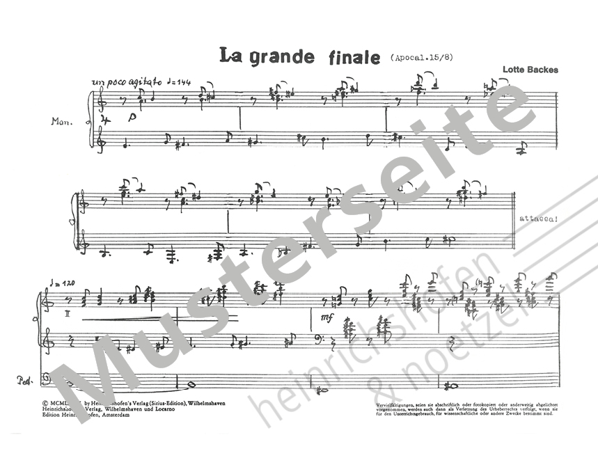 Lotte Backes (1901–1990), recipient of the Federal Cross of Merit for her lifetime achievement in composition, was a pianist, organist and composer. She composed many organ works and chamber music pieces and created numerous works, including toccatas, partitas, passacaglias, improvisations, etc.