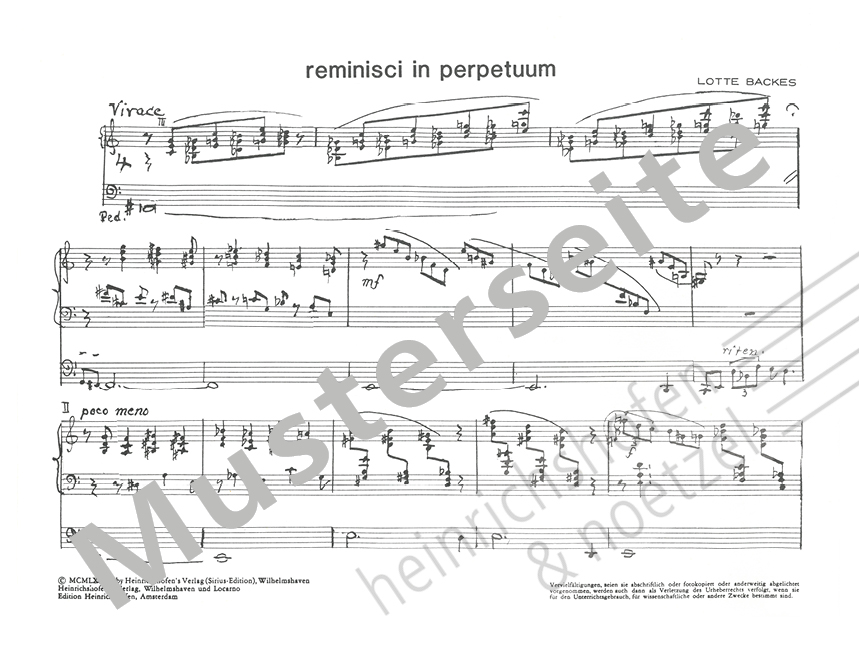 Lotte Backes (1901–1990), recipient of the Federal Cross of Merit for her lifetime achievement in composition, was a pianist, organist and composer. She composed many organ works and chamber music pieces and created numerous works, including toccatas, partitas, passacaglias, improvisations, etc.