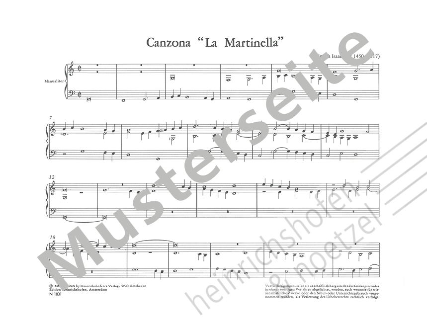 1. Heinrich Isaac, Canzona "La Martinella"