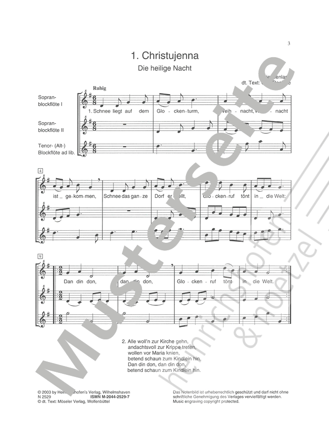 - Instrumentation 2 Sopranblockflöten, Tenorblockflöte, Altblockflöte oder Violine ad lib.